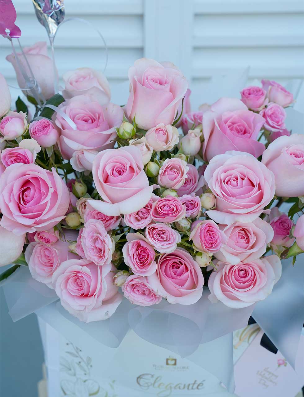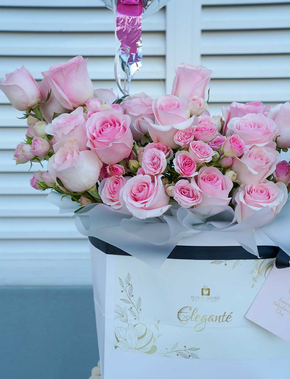 Indulge in the essence of love with Floral Allure’s exquisite Blush Crush Rose Box—a captivating Valentine’s Day gift that speaks volumes of affection. This thoughtfully curated bouquet features a harmonious blend of enchanting roses and delicate spray roses, meticulously arranged to convey the tender emotions of romance. Nestled within the box, playful balloons add an extra touch of joy and celebration. The Blush Crush Rose Box by Floral Allure is a timeless expression of love, making it the perfect gesture to sweep your special someone off their feet and create unforgettable moments this Valentine’s Day.
