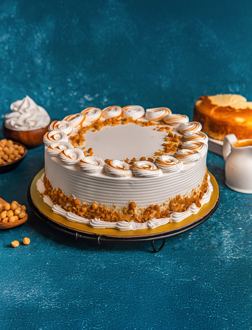 Indulge in the delightful decadence of our Butter Scotch Cake, a perfect gift for any occasion. This luscious cake features a moist, buttery base layered with rich butterscotch cream and sprinkled with crunchy butterscotch bits for that extra touch of sweetness. Each bite melts in your mouth, making it an irresistible treat for celebrations, birthdays, or simply to show someone you care. Elegantly decorated, this cake not only tastes divine but also adds a charming touch to any gathering. Share the joy of flavor and sweetness with the Butter Scotch Cake by Floral Allure.