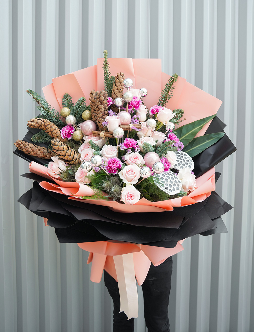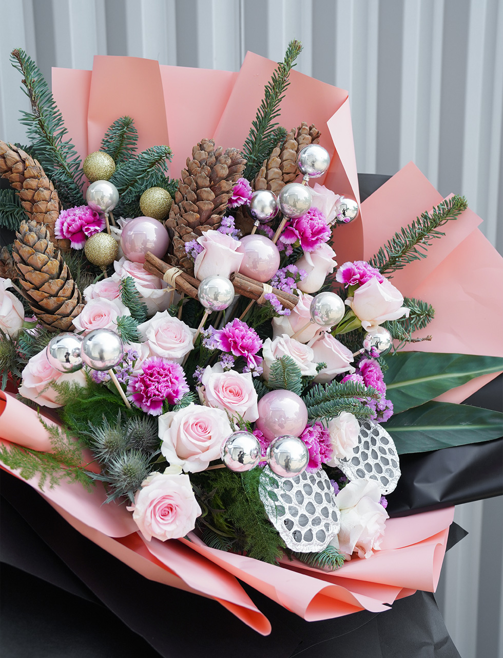 Evergreen Elegance captures the timeless charm of the holiday season. This sophisticated bouquet exudes warmth and joy, making it the perfect gift to share with loved ones during Christmas. With its elegant design and rich, festive hues, it brings a touch of classic beauty to any setting. Whether displayed as a centerpiece or gifted with care, Evergreen Elegance is sure to spread holiday cheer and create lasting memories.