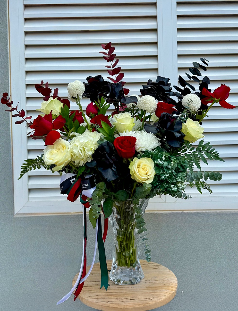 Celebrate the spirit of the UAE with our Pride in Petals Vase, a stunning glass arrangement featuring blooms inspired by the national flag. Designed to honour unity and heritage, this elegant vase makes the perfect National Day gift for homes, offices, and loved ones.